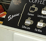 Promotional and informative materials including custom signs, business cards, banners, flyers, vehicle decals, restaurant menus, and more.
